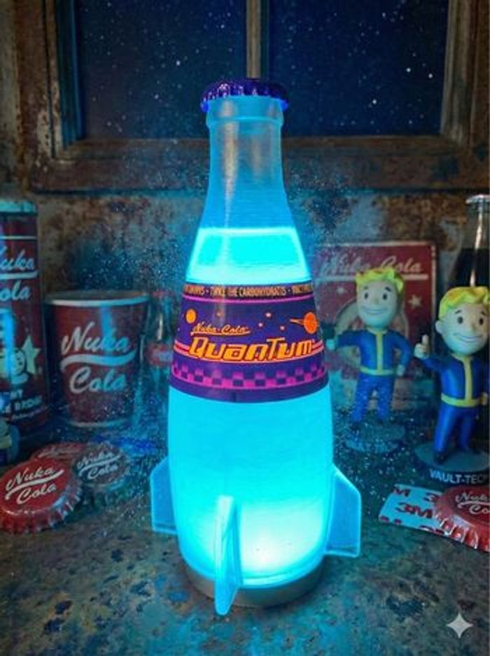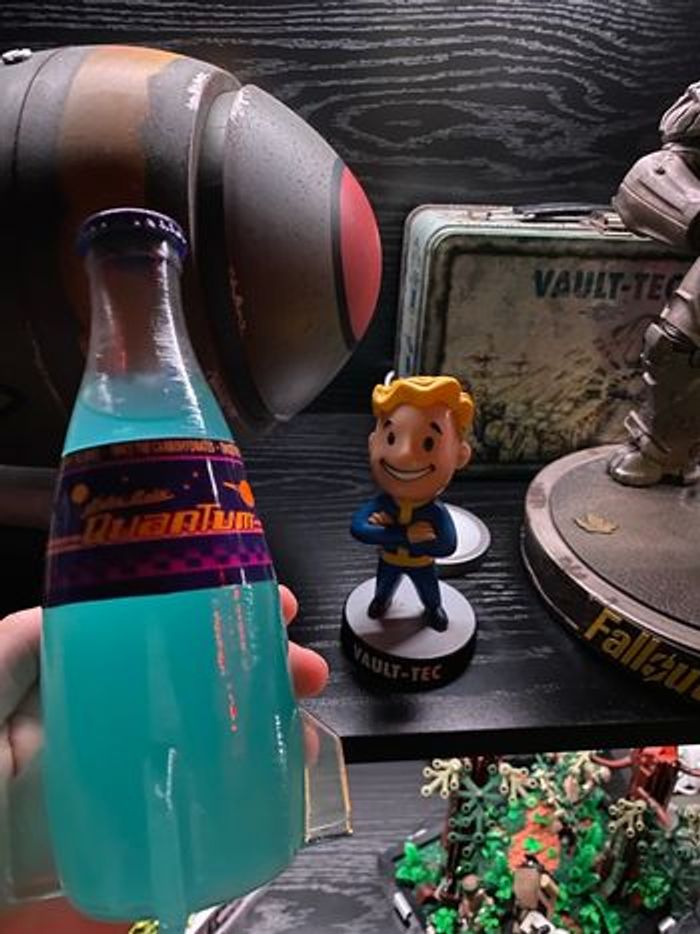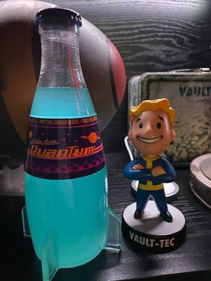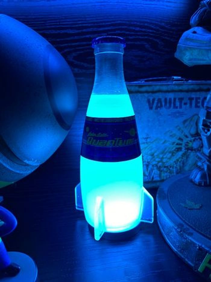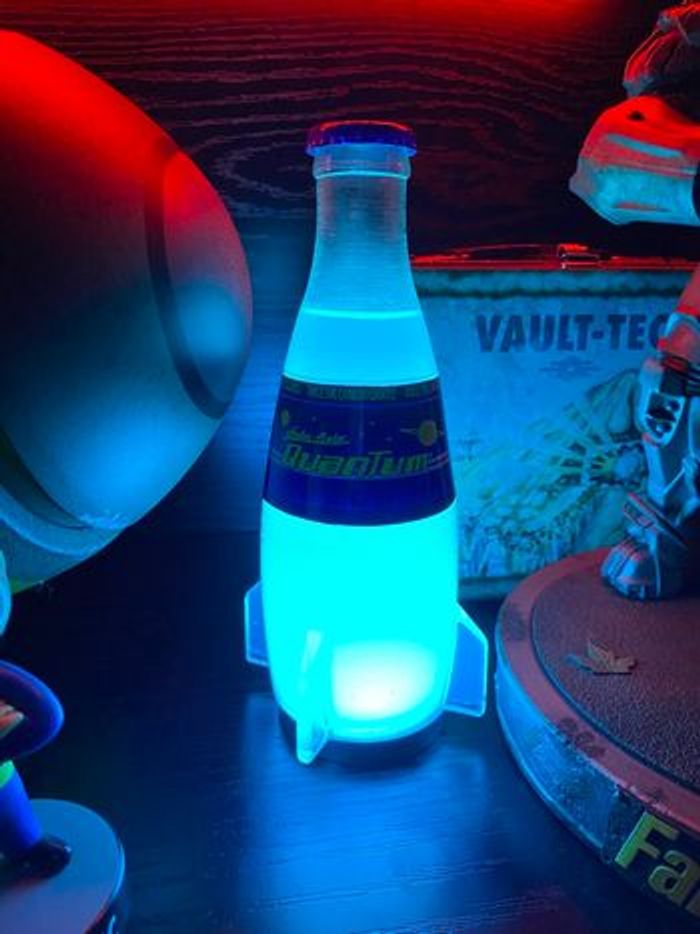 Bouteille Nuka Cola Quantum de l'univers Fallout fabriquer de toutes pièces pour vous aider dans les terres désolées (attention au radiation☢️) 😜