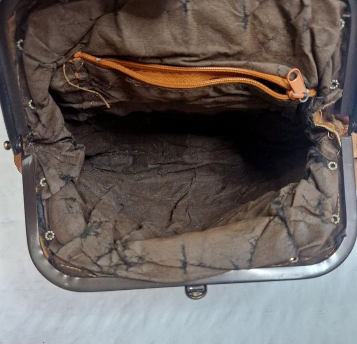 Sac a mains cuir  vintage  , marron , fermoir métallique - photo numéro 5