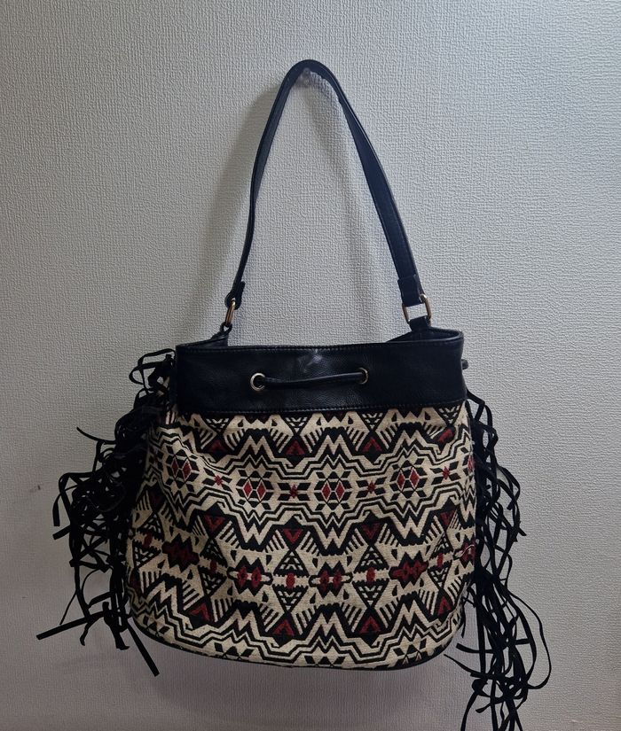 Bonjour , vend sac à main femme , style rétro / vintage , sac bandoulière a frange , frange qui ont besoin d'être remis en forme , légère traces d'usure sur le dessous du sac , reste en très bon état #mode #trend #tendance #chic #élégant #marque #quality #qualité #femme #woman #women #sac #bag #sacamain #sacbandouliere #vintage #ancien #retro #géometric #hippie