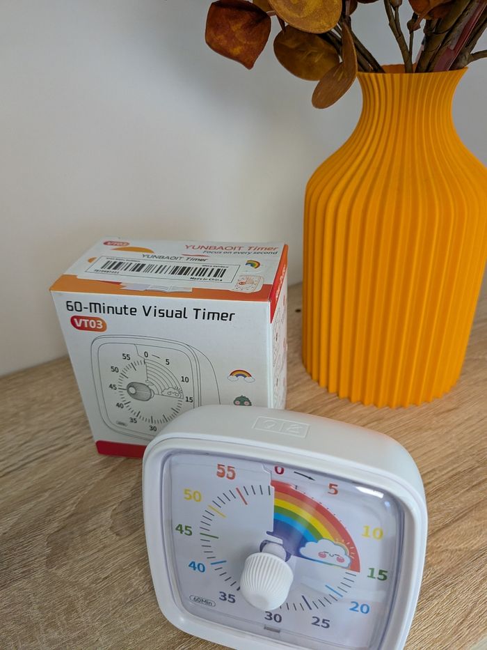 Time Timer blanc, idéal pour la gestion du temps pour les enfants, les adultes, le travail, les devoirs ou les personnes avec TDAH.
