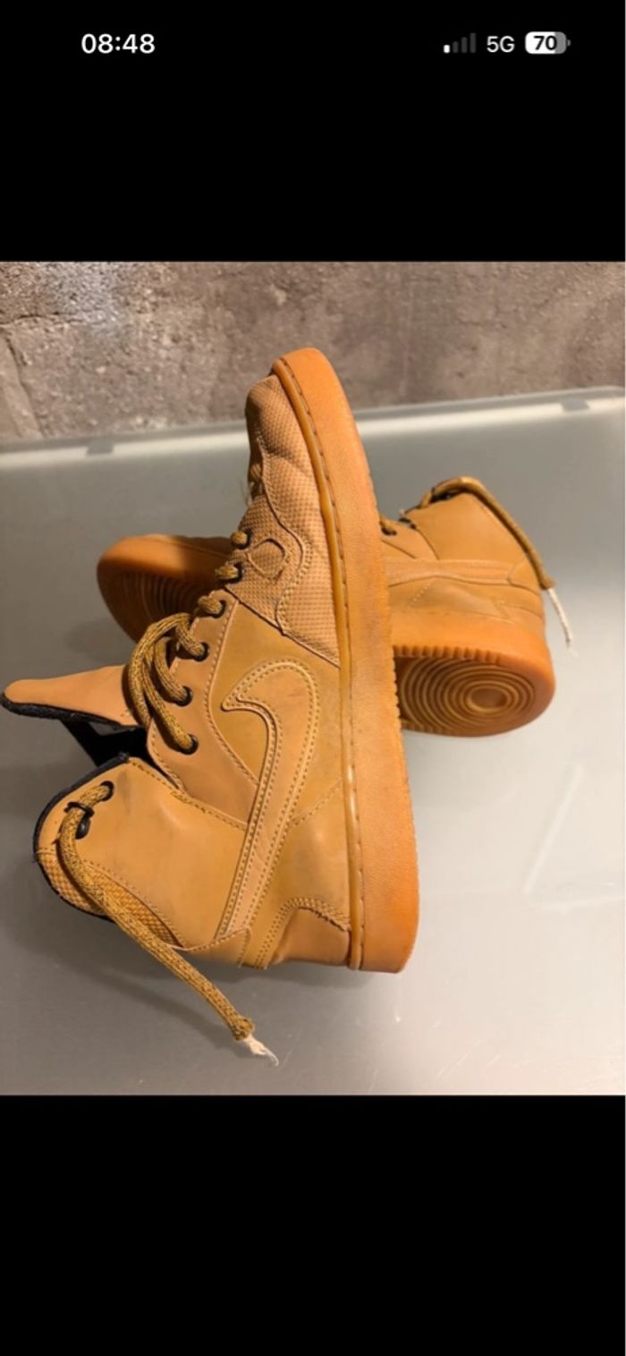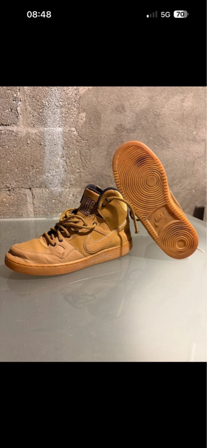 Je vends cette paire de baskets montantes Nike au look "Boot" (couleur Blé/Wheat) avec une semelle en gomme. Parfaites pour l'automne et pour un style urbain décontracté.