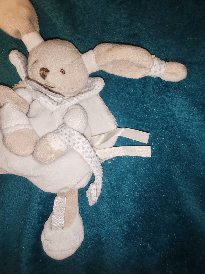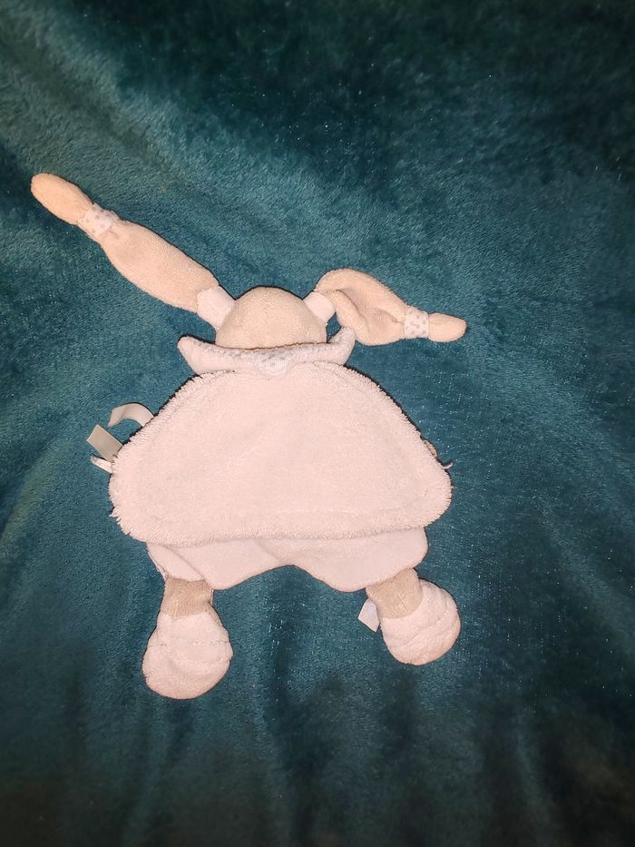 Doudou Lapin Celeste Blanc Beige Etoile Attache Tétine Grelot DOUDOU ET COMPAGNIE 18 cm environ Avec sa cape Collection céleste et clémentine 9.90 euros Envoi en relais