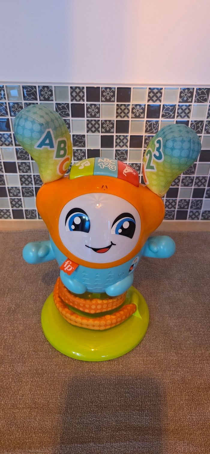 Quand bébé appuie sur les boutons, le compagnon de danse interactif se met à sautiller. Ses mouvements sont accompagnés de lumières colorées et de plus de 75 chansons, sons et phrases pour apprendre à l’enfant l’alphabet, les chiffres, les couleurs et plus encore.