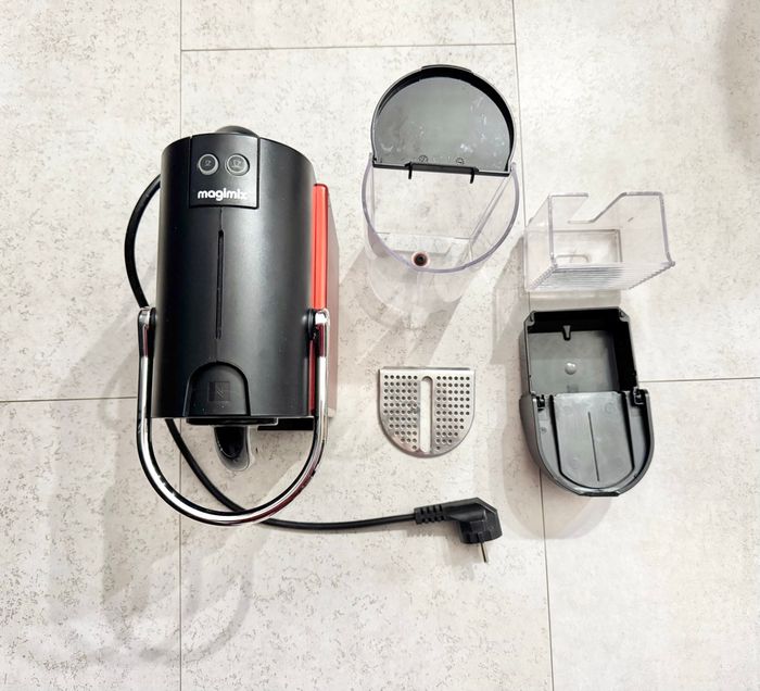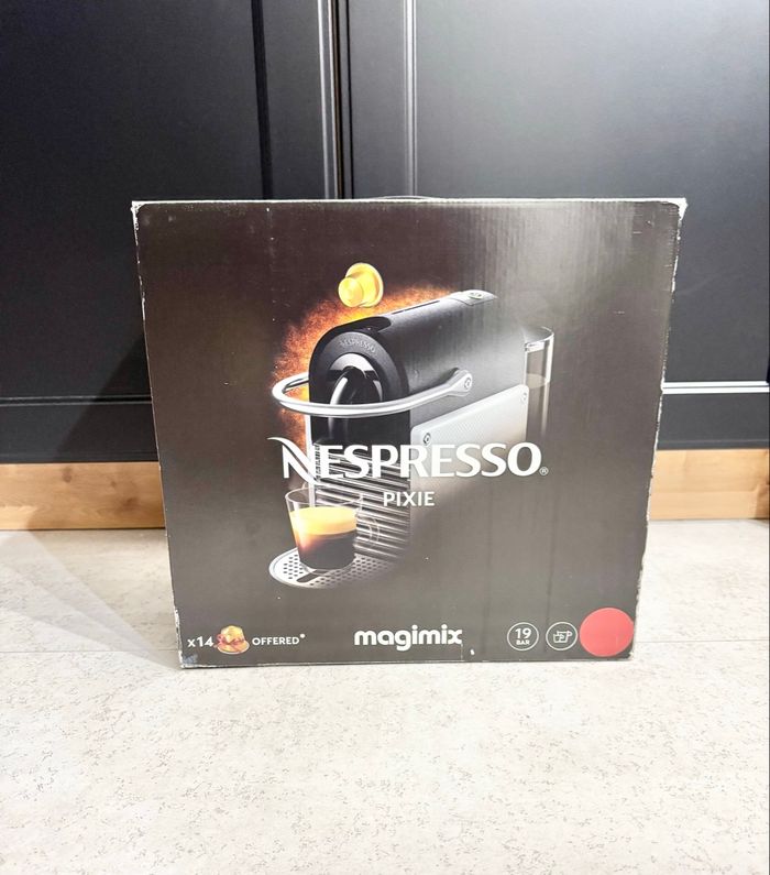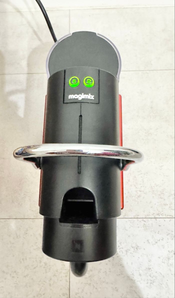 C’est une machine à café de la gamme Nespresso Pixie, marque Magimix de couleur rouge et noire, mix couleurs qui ne se fait plus.