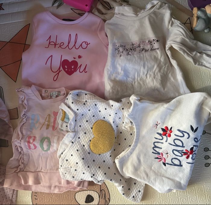 Le lot contient environ 299 articles de toutes saisons (Bodies, robes, short, pantalons, pulls, manteaux, gilets ....) Envoi très rapide. Possibilité de faire de plus petits lots ou de vendre à l’unité #bebefille #lot12mois #12mois #12moisfille