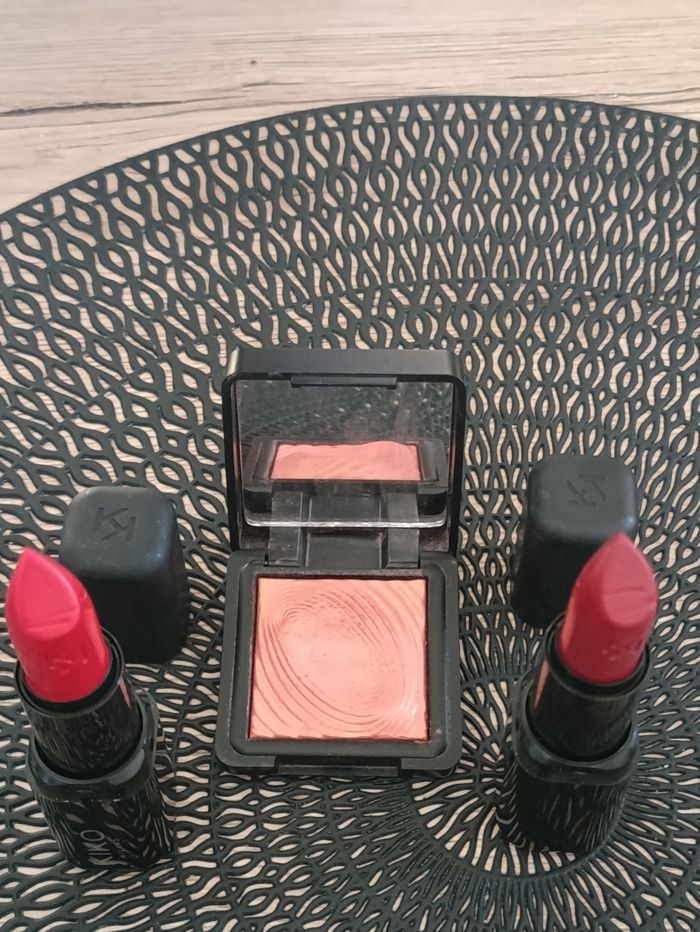 Lot de maquillage KIKO MILANO 2 rouges à lèvres N°104 et 116 et une ombre à paupières avec miroir N°218
