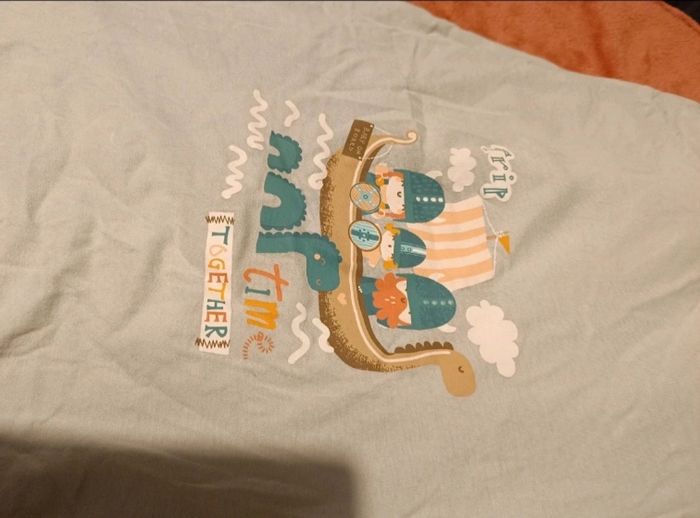 Motif original "Petit Viking" sur un fond vert d'eau très doux.