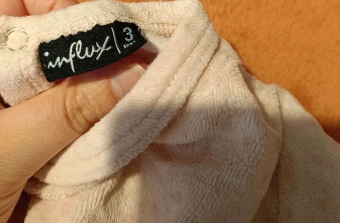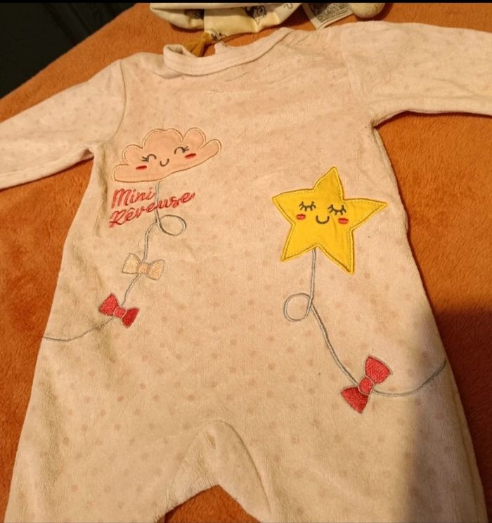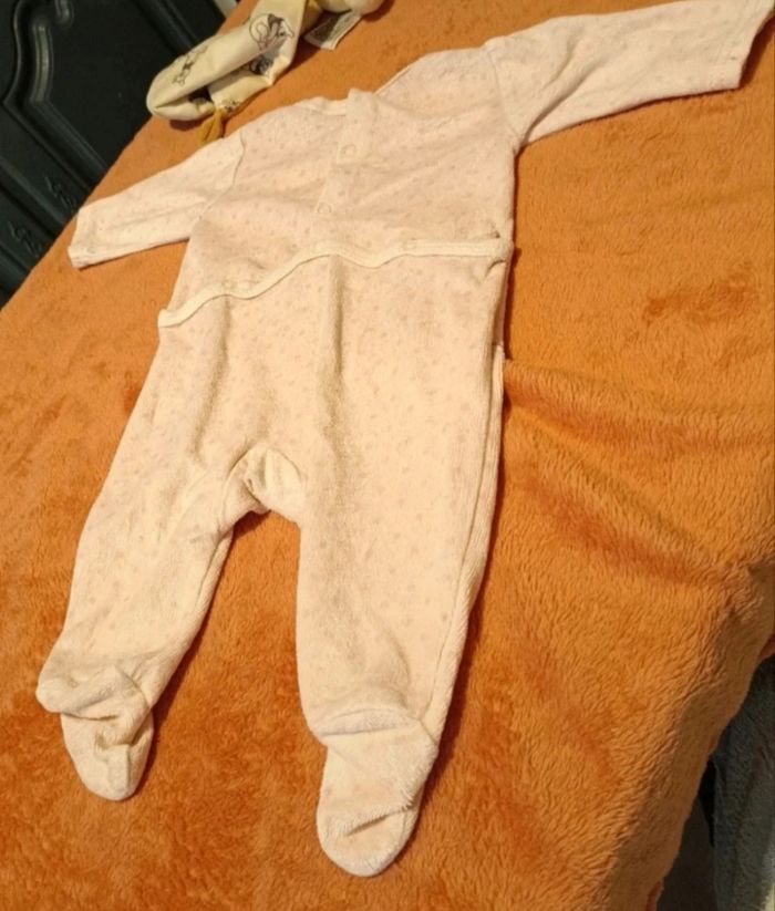Matière : Aspect velours doux (éponge rase), typique des pyjamas confortables pour nourrissons.