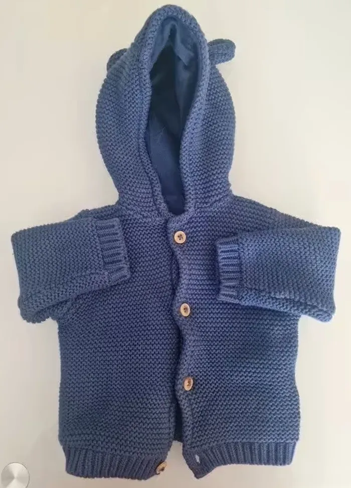Gilet de marque Marks & Spencer, avec capuche, doublé, taille 0/3 mois, 100% coton. Couleur bleu foncé.