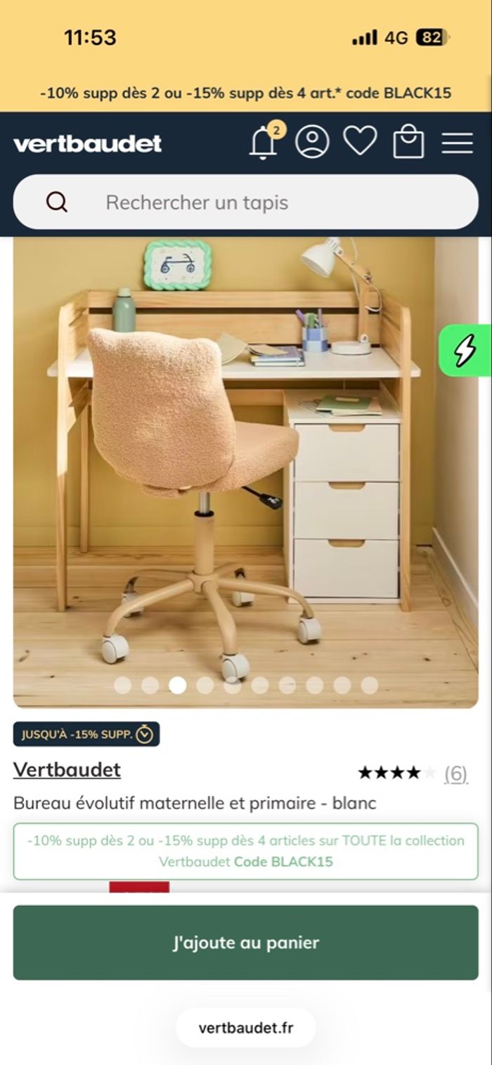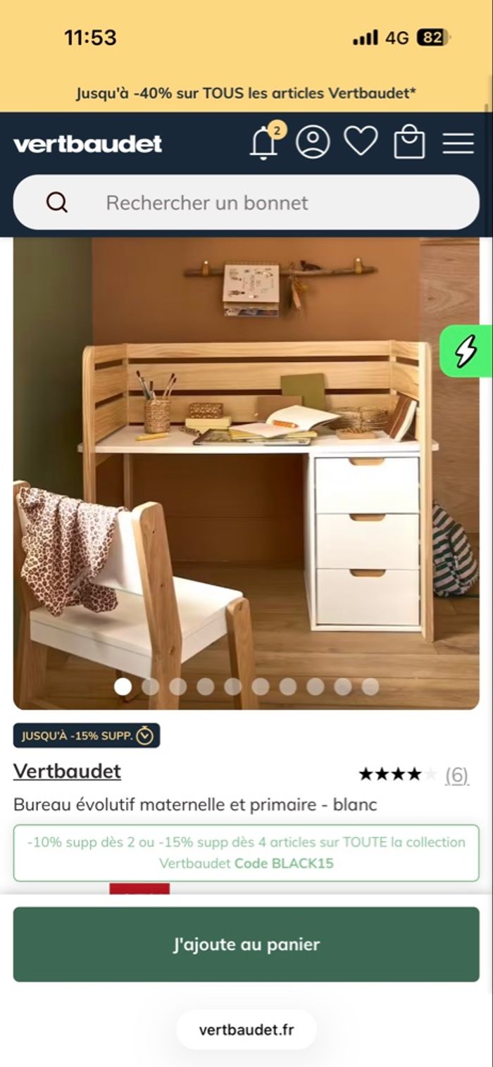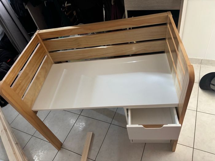 Je vends ce bureau évolutif maternel et primaire de la marque Vertbaudet, en bois de couleur blanche.
