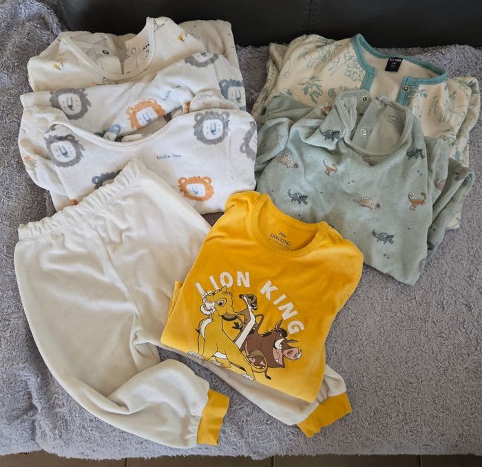 Lot 5 pyjamas hivers garçon 4 pyjamas 1 pièces 1 pyjama 2 pièces Marque kiabi et primark Bon état Le pyjama 2 pièces comporte des tâches a l'arrière du pyjama (voir photo 2 et3) 2 pyjamas 1 pièces comportent des signes d'usures en dessous d'un pied (voir photo 4) Les différents défauts n'empêchent pas d'être portés 10e négociable dans la limite du raisonnable