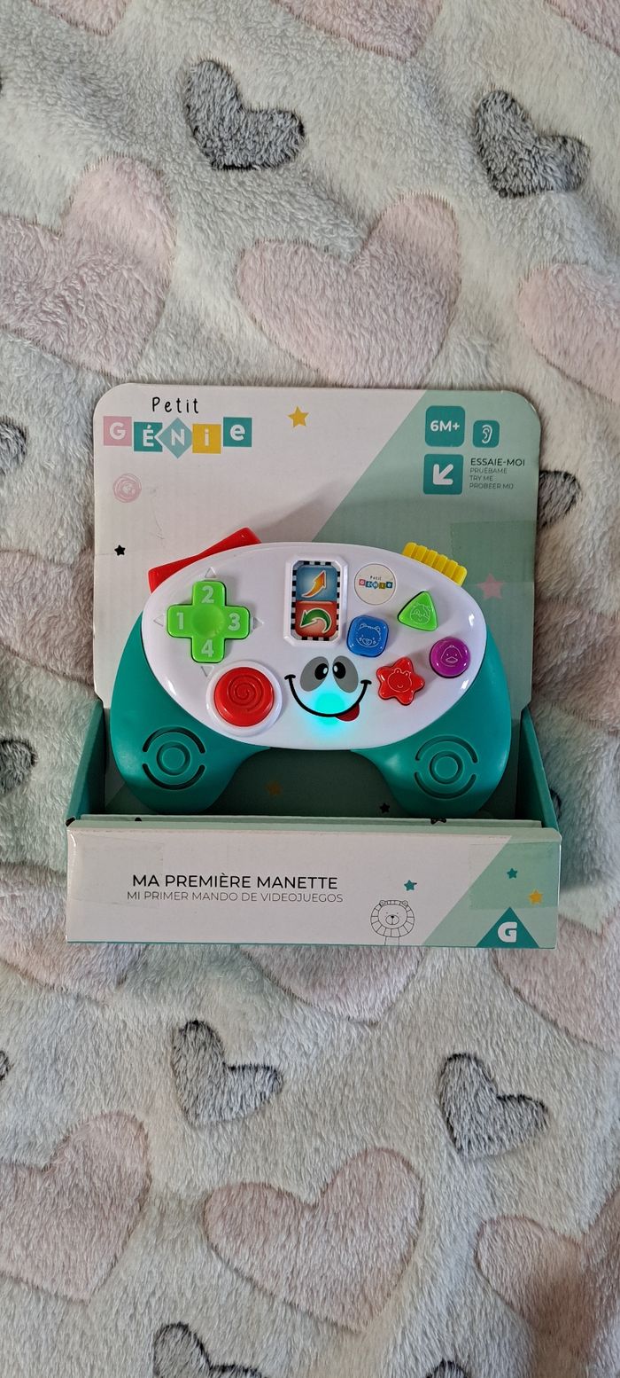 Manette Petit Génie " Ma première manette de jeux vidéos " qui fait du bruit, de la musique etc... 6 mois et + Très bon état. Fonctionnel. Piles remise pour montrer que le jouet fonctionne, non incluses. Avec sa boîte mais pas les attaches. ➡️ D'autres jouets pour bébé/ enfants à petits prixs sont également disponible sur mon profil, n'hésitez pas à regarder. 🚭 Maison non fumeur. 📦 | Envoi rapide et soigné. 💬 | pour plus de renseignements n'hésitez pas à envoyer un message