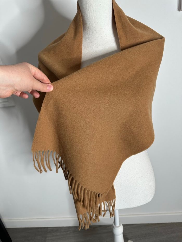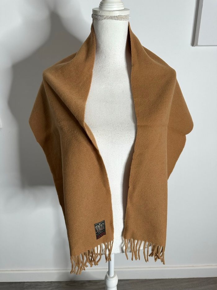 Écharpe châle - Excellent état - Beige camel - Avec franges - 100% laine d’agneau - Vintage, années 80’ - Ultra douce et chaude - Marque Salangane Dimensions: - 30cm de large - 140cm de long sans les franges - 8cm de franges de chaque côté