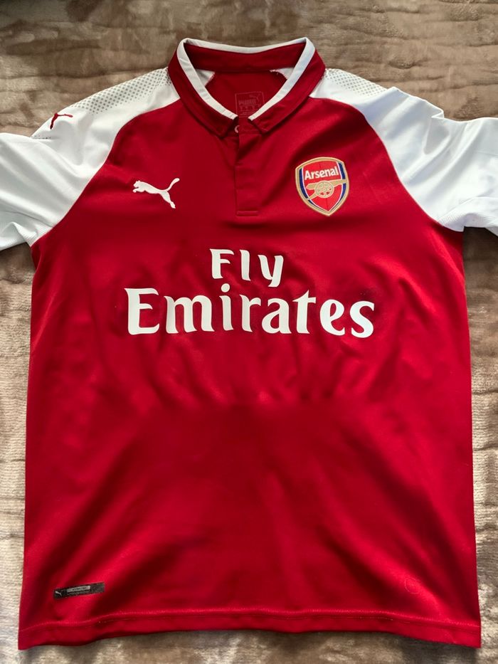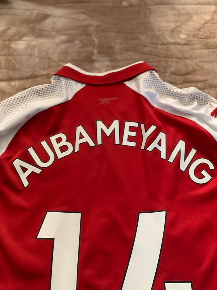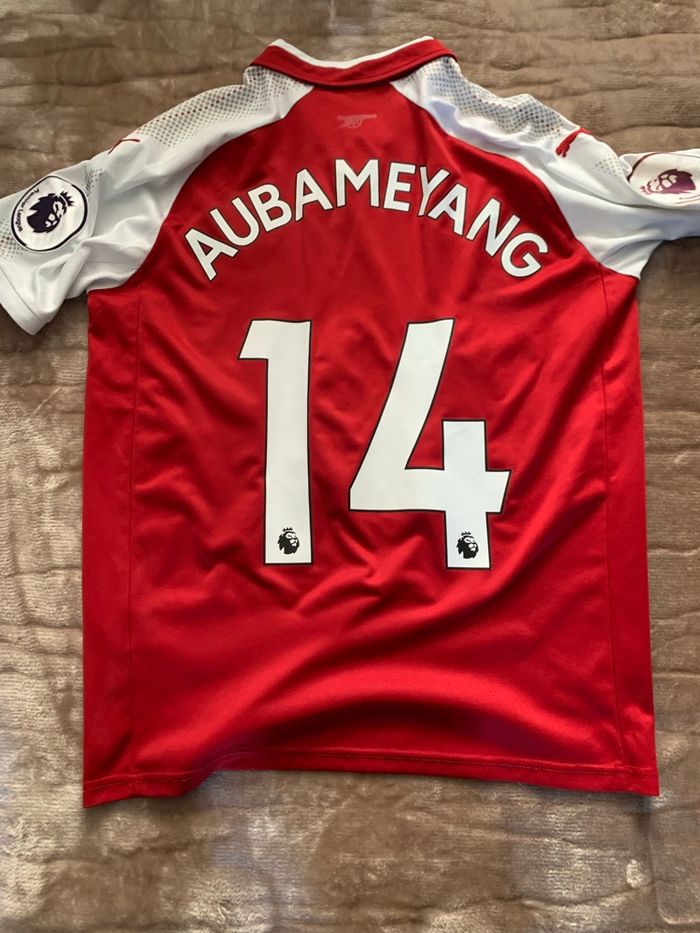 Bonjour Tee shirt de football Aubameyang arsenal En bon état pas de trou, mais une tache autour du sponsor est présent mais peu visible voir photo Sponsor et nom au dos en très bon état Taille S / authentique envoi rapide et soigné