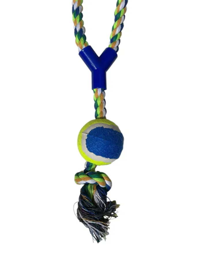 Jouet pour chien JK Animals corde tressée bleue blanche + balle de tennis raccord plastique 40 cm - photo numéro 2