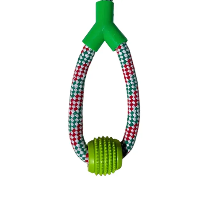 Un jouet robuste et coloré pour des heures de jeu ! Avec sa corde tressée tricolore et sa balle en caoutchouc texturé verte, ce jouet est parfait pour divertir votre chien tout en renforçant sa mâchoire. Long de 48 cm, il convient aussi bien aux jeux de traction qu’à la mastication. Conçu pour durer, il ravira les chiens qui aiment jouer activement. Un choix sûr et amusant de la marque JK Animals.