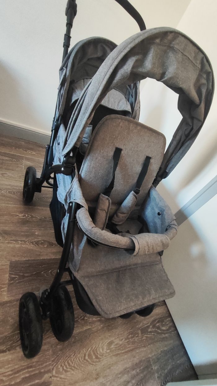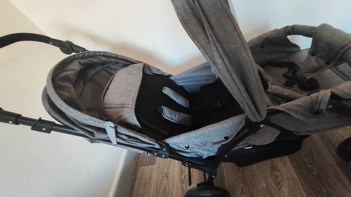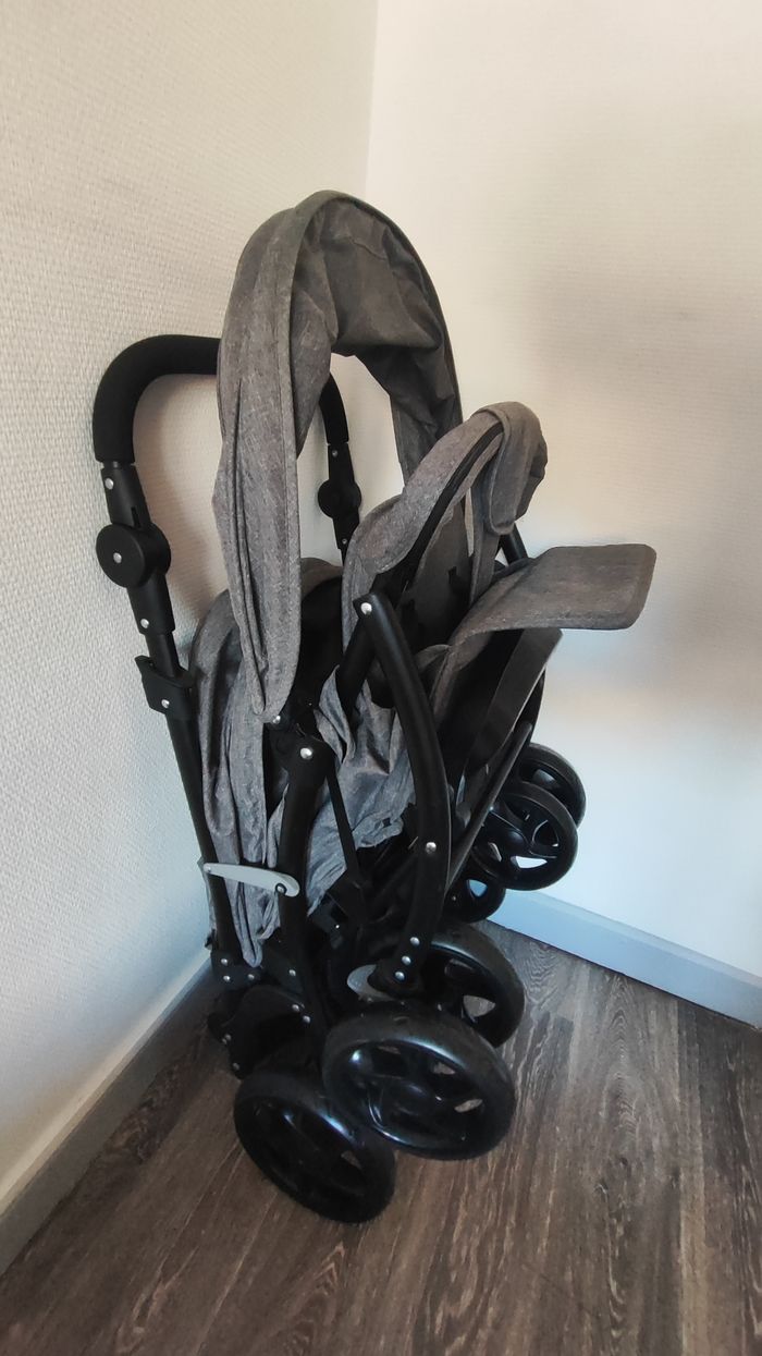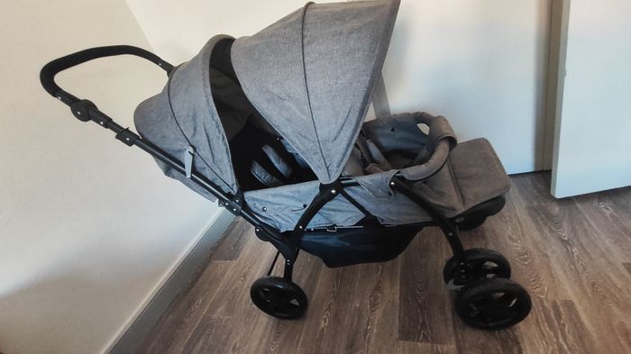 Couleur : Gris/Noir Matière : Métal, EVA, tissu Oxford, nylon Dimensions de la poussette : 123 x 57 x 95-110 cm (L x l x H) Dimensions du landau plié : 31 x 57 x 110 cm (L x l x H) Capacité de charge : 30 kg Âge recommandé pour le siège avant : 6-36 mois Âge recommandé pour le siège arrière : 0-36 mois Poids net : 14 kg Poussette de 2 places est destinée aux familles avec 2 enfants Poussette léger et facile pour les parents de voyager L'auvent réglable et amovible Dossiers et douchette réglables Harnais à 5 points et roues avec système de freinage pour la sécurité je la mets à 140 €, mais peut être négociable dans la limite du raisonnable