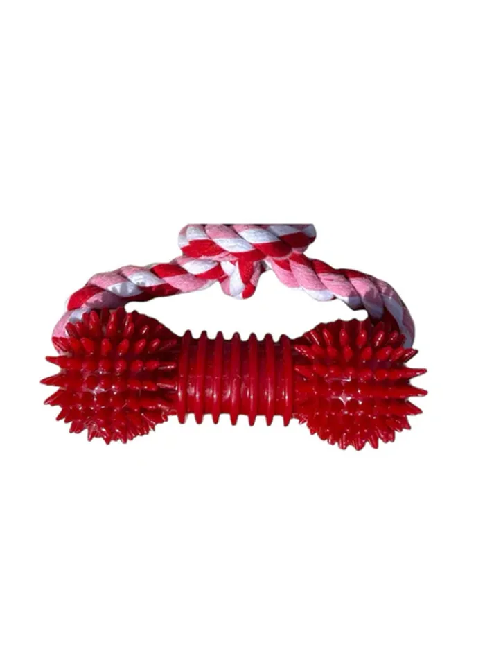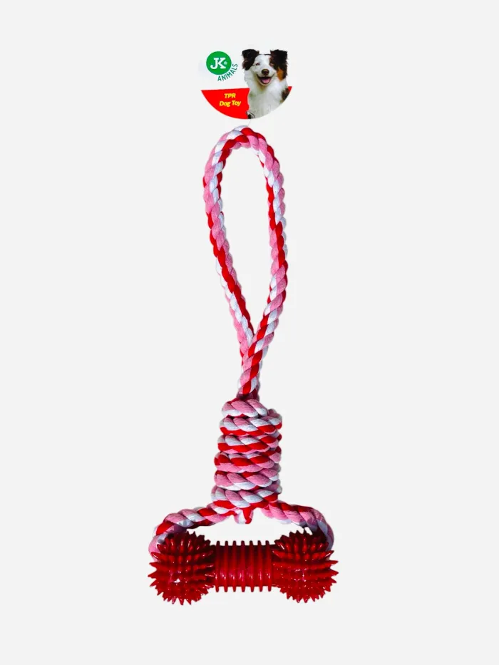 Jouet pour chien JK Animals en corde tressée + os à picots en caoutchouc TPR rouge 34,5 cm Neuf