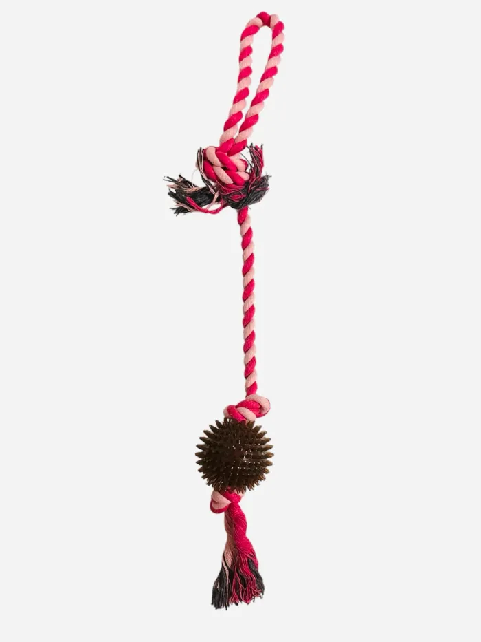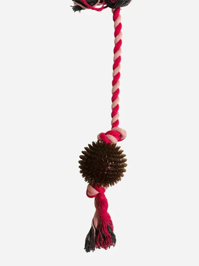 Jouet pour chien Forpet en corde tressée rose + balle de mastication marron 50 cm Neuf