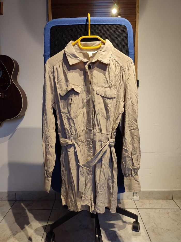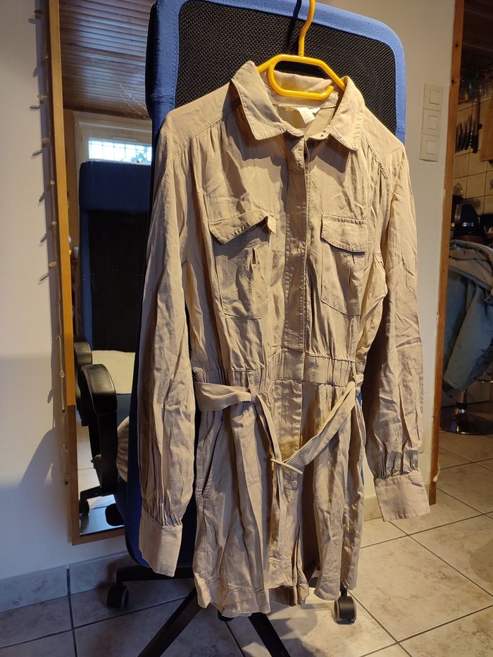 Combishort beige, ceintrée à la taille. Couleur beige. Peu portée elle est en très bon état. Marque H&M, taille 40