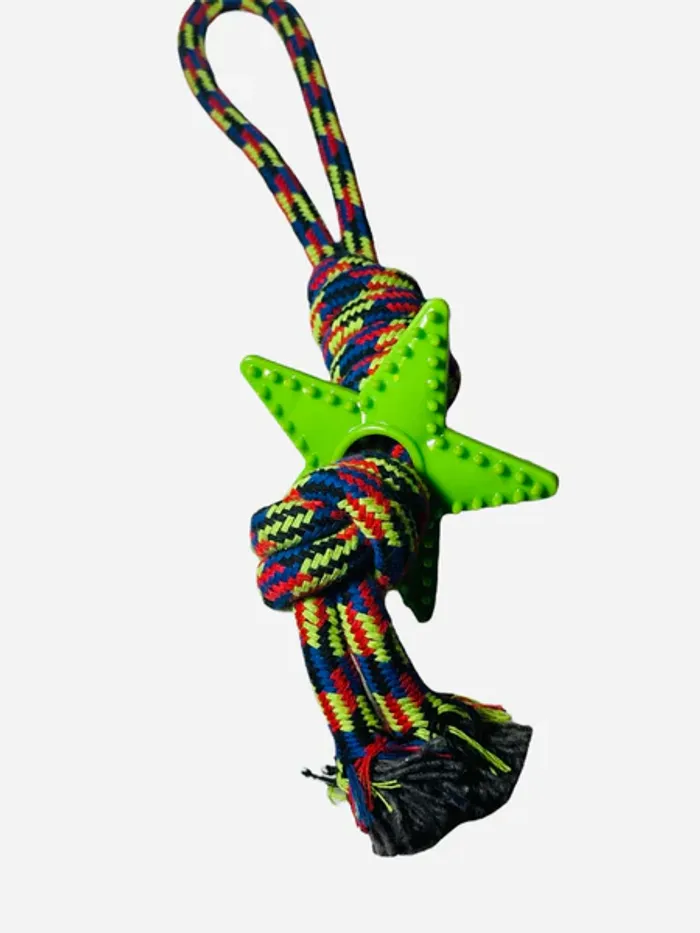 Jouet pour chien Lynpet corde tressée color + étoile de mastication vert 36 cm Neuf