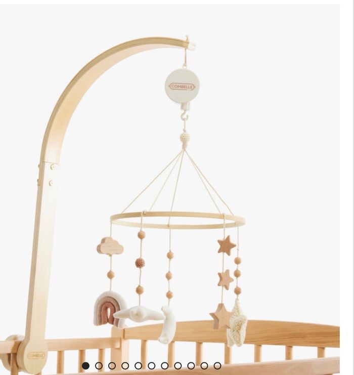 La boîte à musique possède un bouton On/Off, et la structure du mobile pourra se fixer facilement au lit de votre enfant grâce à la molette de serrage.