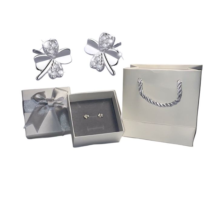 Apportez une touche de chance et d’élégance à votre style avec ces magnifiques boucles d’oreilles trèfle à quatre feuilles, symbole de bonheur et de raffinement. ✨ Description Ces boucles d’oreilles délicates sont conçues en argent sterling 925, finement polies pour une brillance durable. Chaque feuille du trèfle est sublimée par de strass scintillants, offrant un éclat chic et féminin. L’embout d’accroche en silicone assure un maintien confortable et sécurisé, idéal pour un port quotidien. 🎁 Présentation soignée Livrées dans une boîte à bijoux blanche élégante, accompagnées d’un sac cadeau blanc, prêtes à offrir pour toutes les occasions : anniversaire, fête, Saint-Valentin, mariage ou simple attention. 📌 Caractéristiques • Motif : Trèfle à quatre feuilles • Matière : Argent sterling 925 • Ornement : Strass brillants • Fermeture : Embout en silicone (confort et sécurité) • Couleur : Argenté • Inclus : Boîte à bijoux blanche + sac cadeau blanc 💖 Pourquoi vous allez les aimer • Design intemporel et porte-bonheur • Qualité argent sterling • Confortables et légères • Cadeau idéal, prêt à offrir 📦 Envoi rapide et soigné