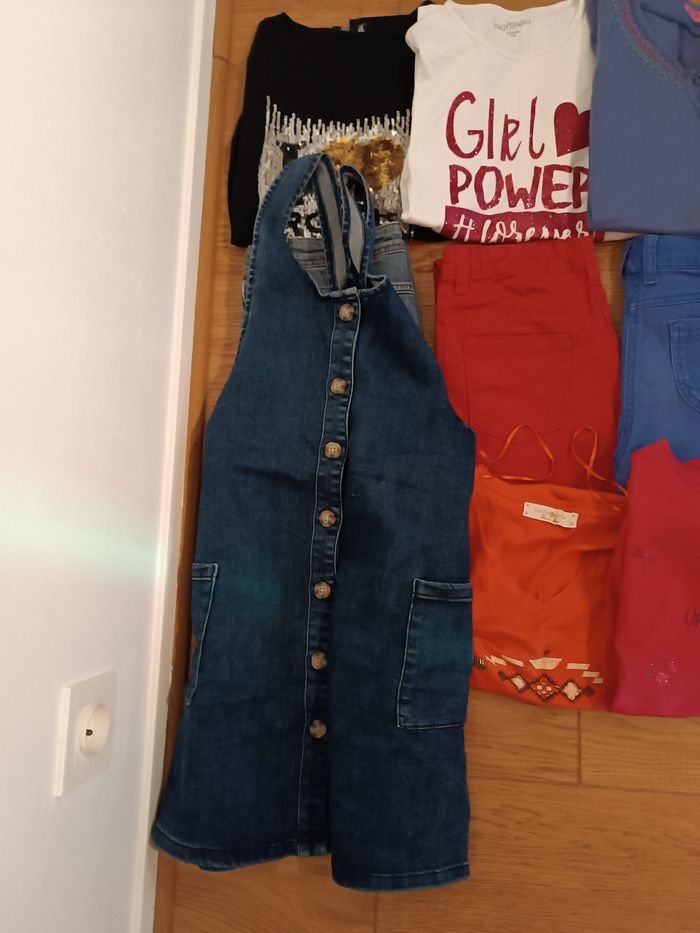 Lot de vêtements fille 12 ans 1 robe salopette en jean 3 pantalons 2 t-shirts manches longues 7 t-shirts manches courtes