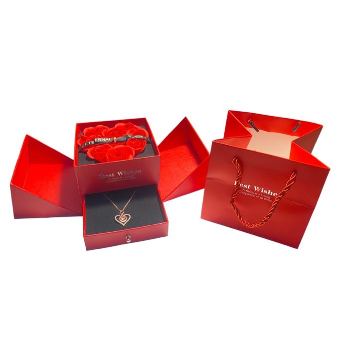Offrez un cadeau plein d’émotion avec ce superbe collier couleur or rose, en forme de cœur associé au symbole de l’infini, orné d’une pierre rose en forme de cœur. Il est présenté dans un magnifique coffret rouge contenant des roses éternelles, symbole d’un amour durable et intemporel. ✨ Détails du produit : • Couleur : Or rose • Pendentif : Cœur & signe infini • Pierre : Pierre rose en forme de cœur • Coffret : Rouge élégant avec roses éternelles décoratives • Style : Romantique, raffiné et symbolique • État : Neuf • Prêt à offrir 🎁 🎁 Idéal pour : • Saint-Valentin • Anniversaire • Fête des mères • Cadeau romantique • Déclaration d’amour 💞 Un bijou unique accompagné de roses éternelles pour exprimer un amour infini.
