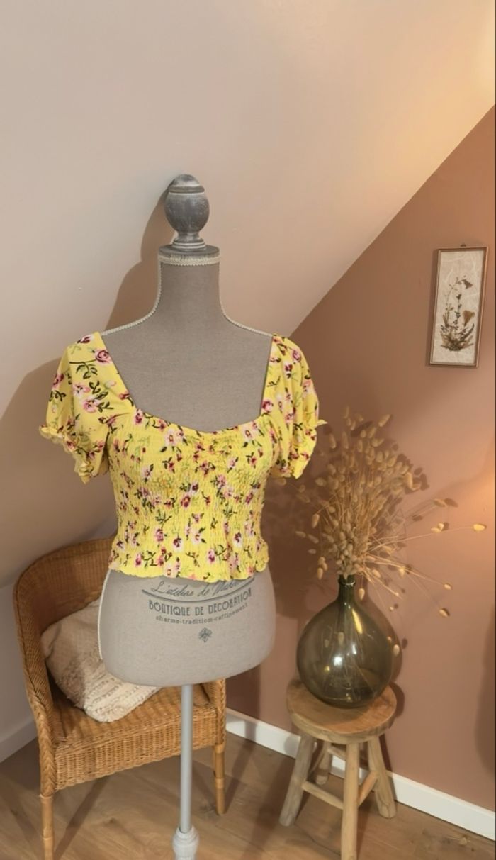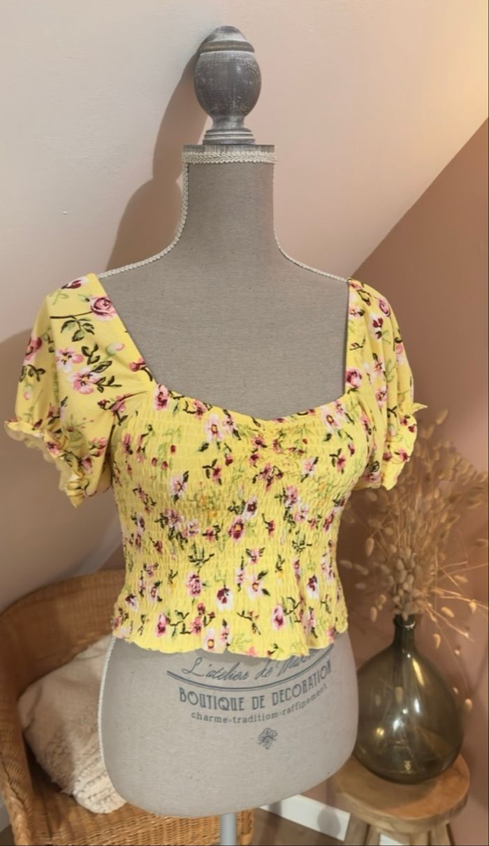 💛 Blouse courte jaune à fleurs – FB Sister – Taille S – Très bon état
