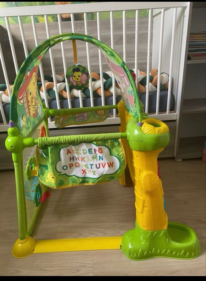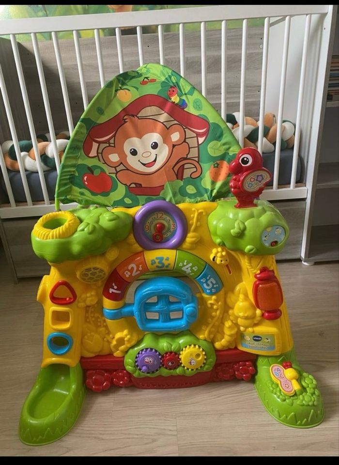 Descriptif produit : Que de bons moments en perspective dans la Magi Cabane interactive ! Bébé apprend et découvre en rampant, en s’amusant à faire dégringoler les balles, en insérant les formes ou en faisant tourner les roues de l’engrenage des 4 panneaux d’activités. Bébé développe ses capacités motrices mais aussi son vocabulaire, grâce aux capteurs magiques et au tableau d’activités interactif, qui lui font découvrir les couleurs, les chiffres, les concepts de la vie quotidienne ou l’invitent à jouer à cache-cache.