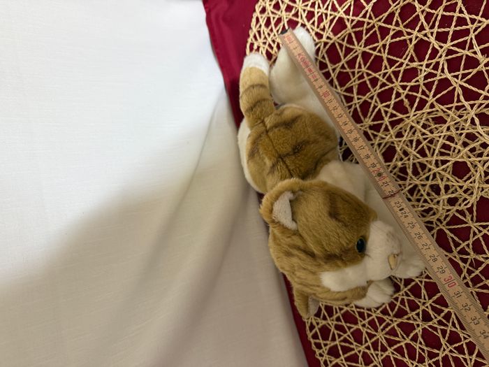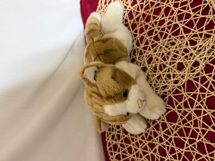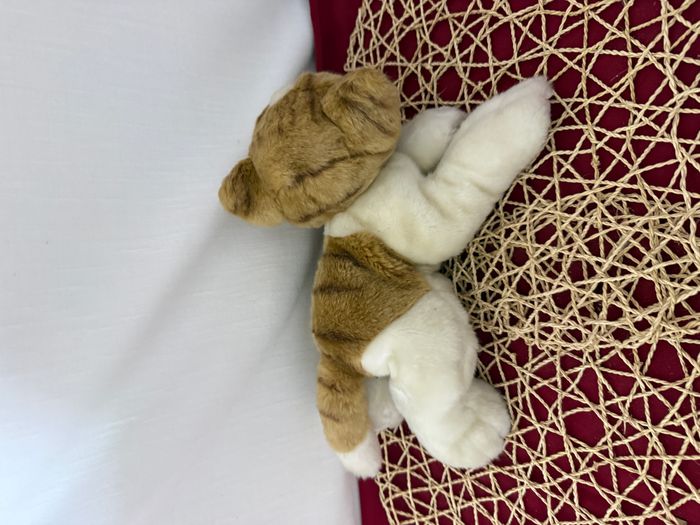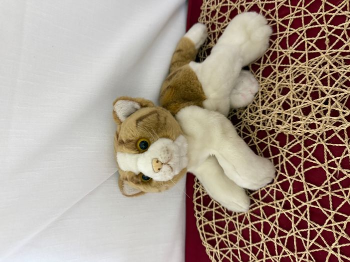 Peluche chat marron et blanc tigré