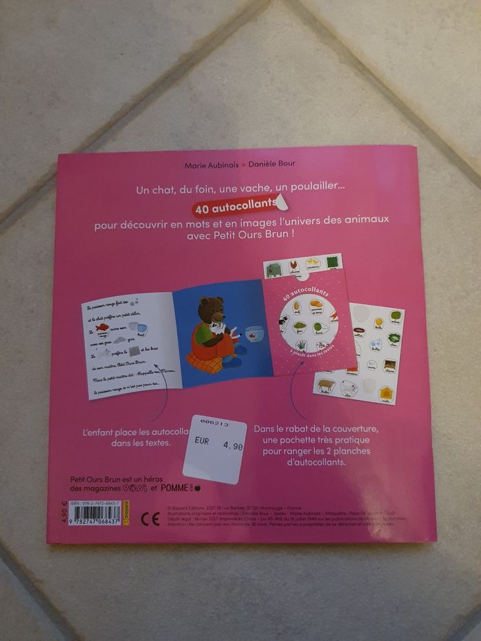 A vendre livre Petit ours brun Les animaux. Pages plastifiées. En très bon état ! ⚠ gommettes manquantes mais n'empêche absolument pas la lecture du livre. N'hésitez pas à jeter un coup d'œil sur mon dressing (d'autres livres Mcdo et livres enfants en vente). Une réduction dès 2 articles achetés !