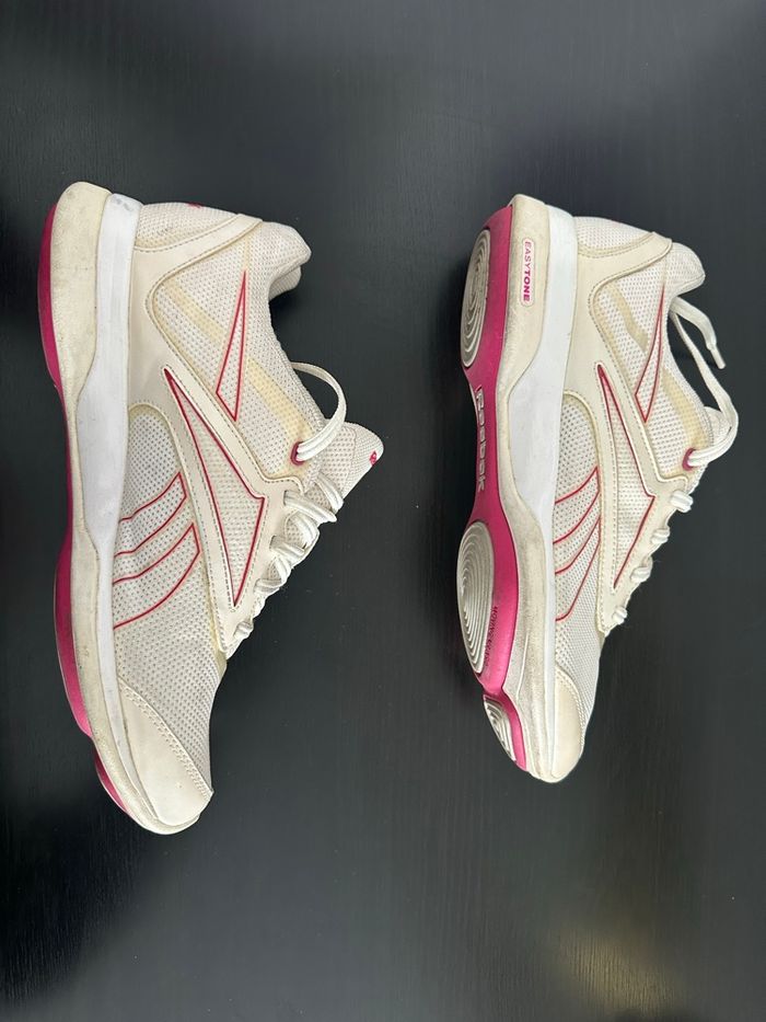 Baskets crème et rose rouge Easytone Reebok T38 - photo numéro 1