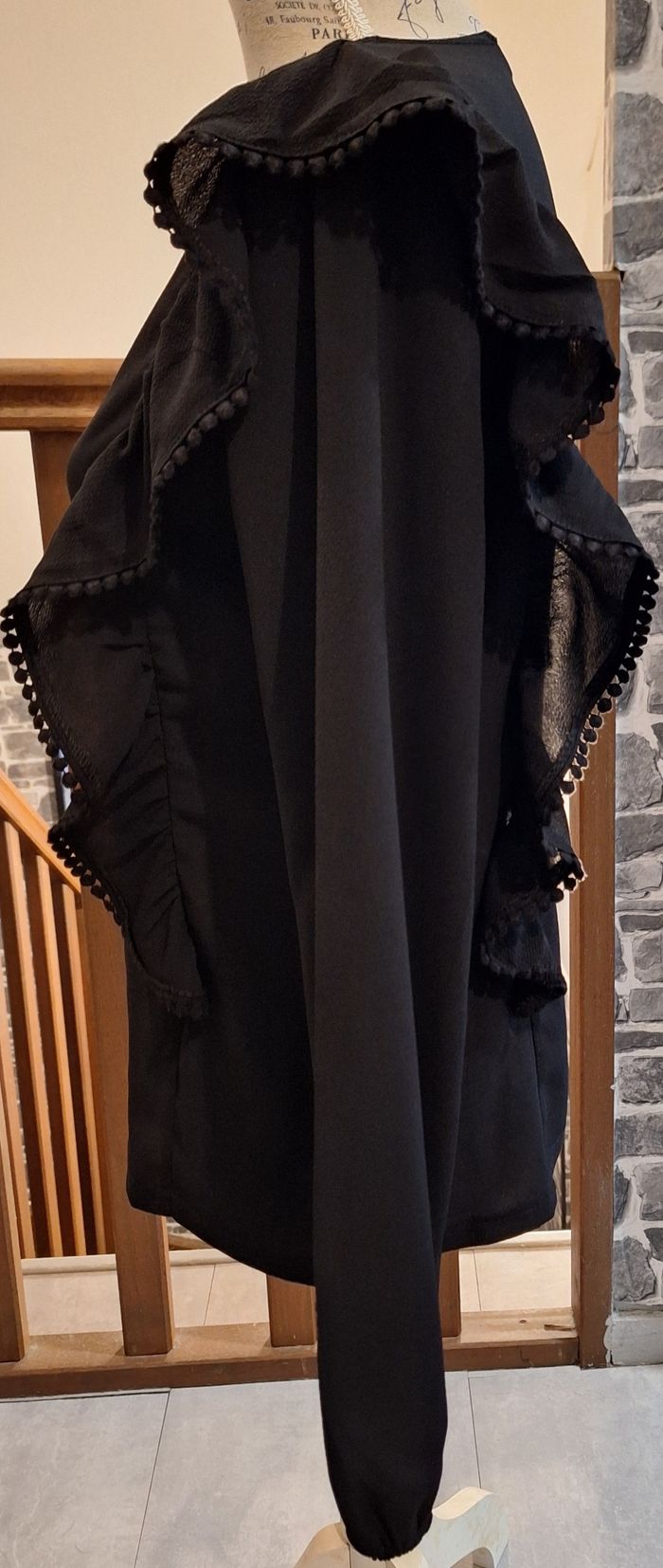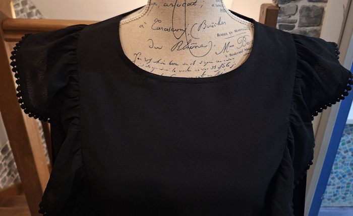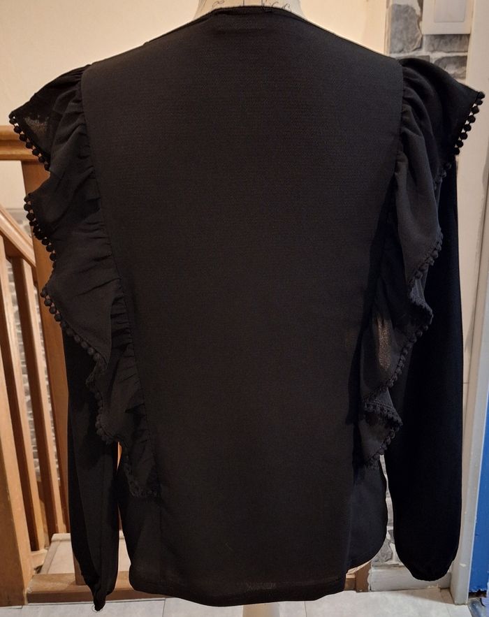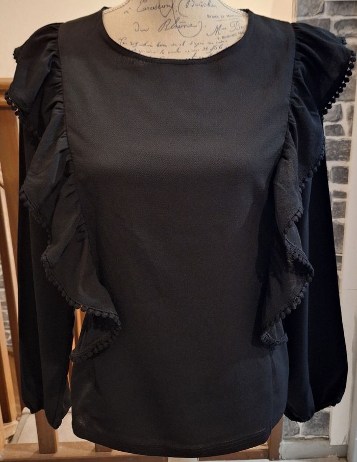 Blouse noire unie volantée sur les côtés