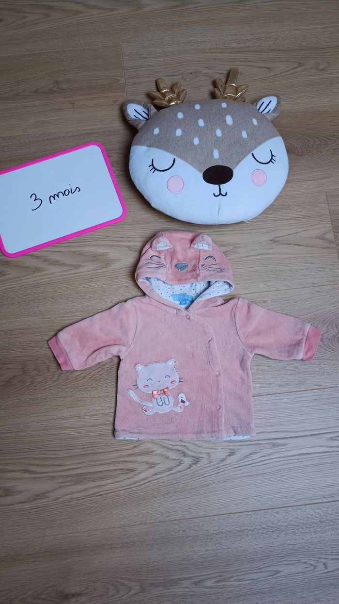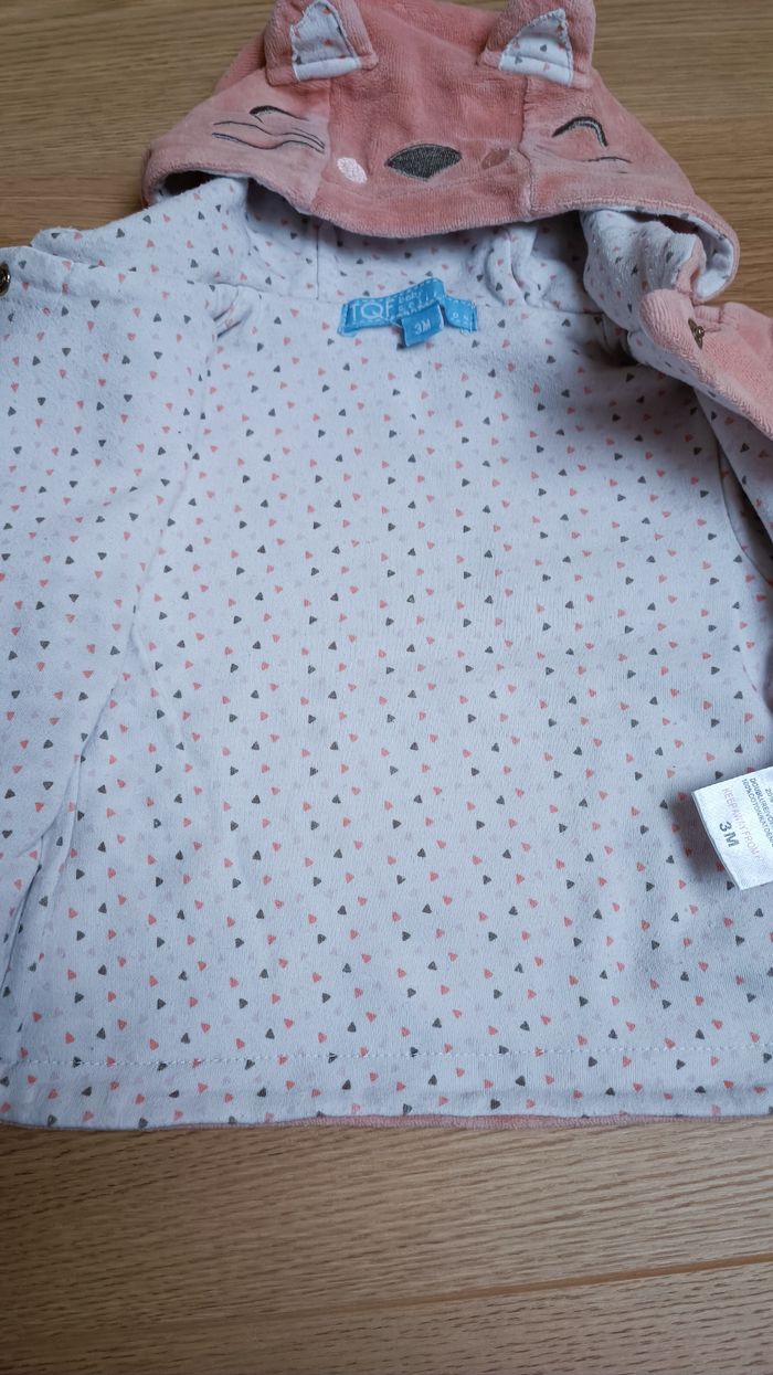 Gilet chaud à capuche avec oreilles de chat Fermeture à pressions Taille 3 mois Marque Trafic Très bon état Maison non fumeur