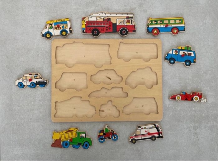 Lot de 4 puzzles en bois Très bon état Le 4eme presente des traces d’usure.