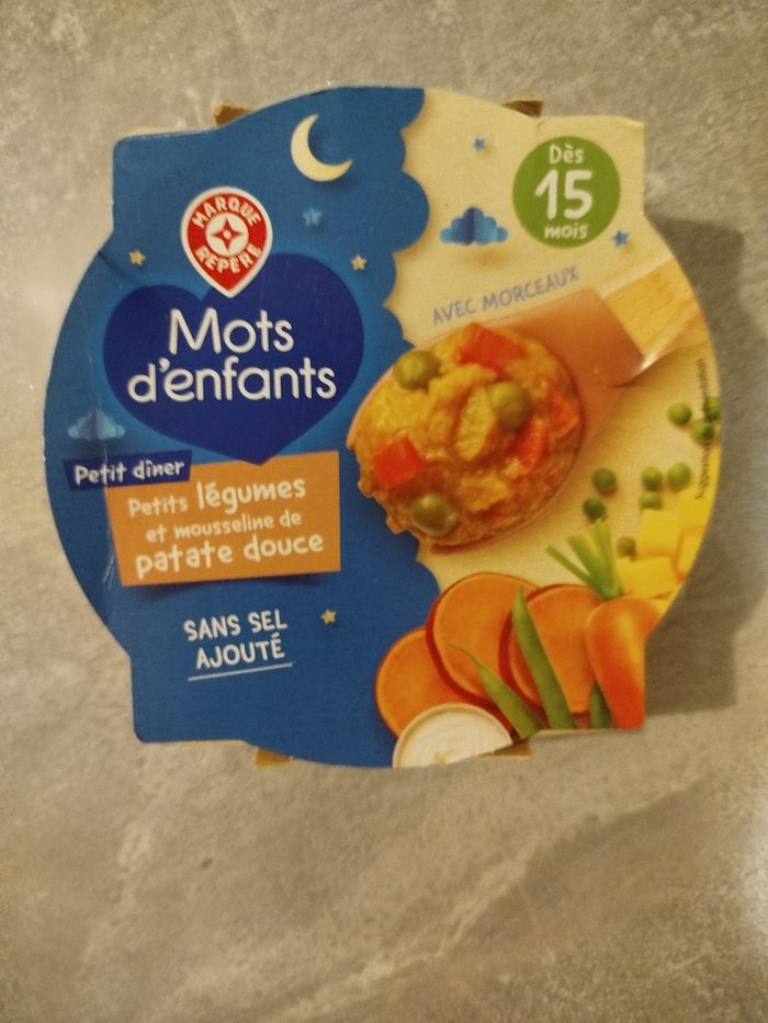 *Mots d'enfants (Leclerc) petits légumes et mousseline de patates douces