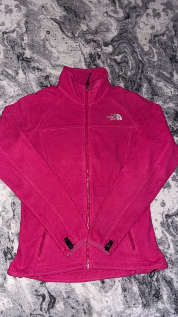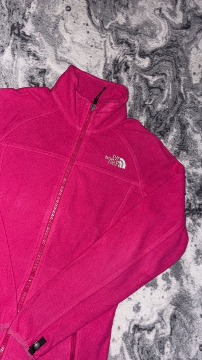 Magnifique polaire The North Face, couleur rose fuchsia vibrant, douce, chaude et ultra confortable.