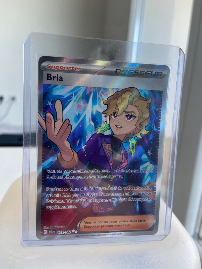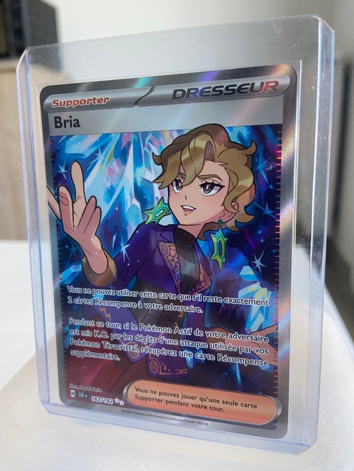 Bonjour, Je vends cette carte Bria 163/142 de l’extension Couronne Stellaire.   ✅ | Carte neuve et vendu avec la sleeve dure ! 📦 | Envoie rapide et soigné 🛍️ | Bon shopping