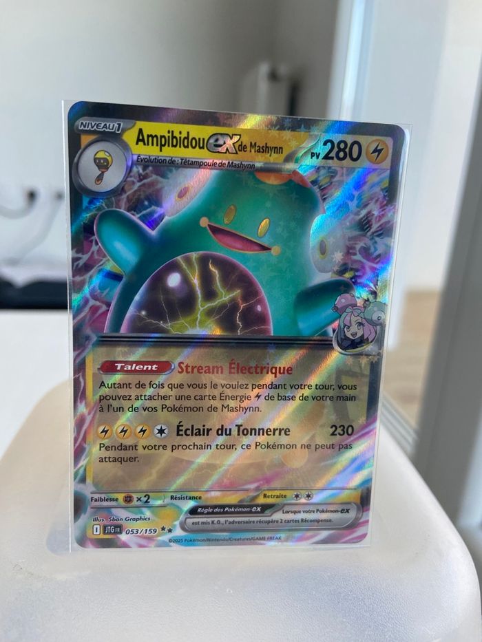 Bonjour, Je vends cette carte Ampibidou ex de mashynn de l’extension Aventure ensemble EV9.   ✅ | Article neuf et vendu avec sleeve dure ! 📦 | Envoie rapide et soigné 🛍️ | Bon shopping
