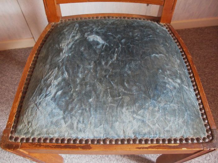 Chaise ancienne bleue fabriquée artisanalement - photo numéro 5