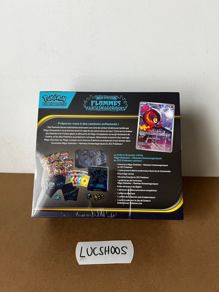 Coffret Dresseur D’Elite Pokémon Flammes Fantasmagoriques ME 2 ETB en parfait état EXPÉDITION DOUBLE BOX SOUS 24H