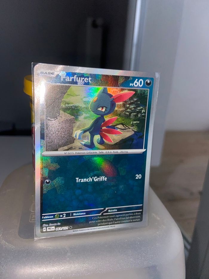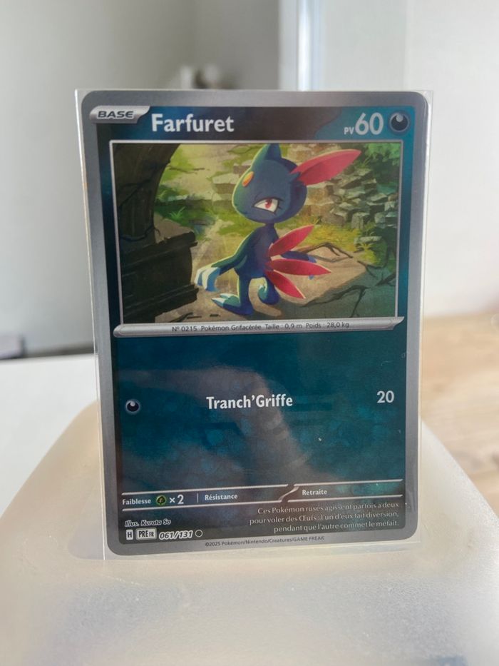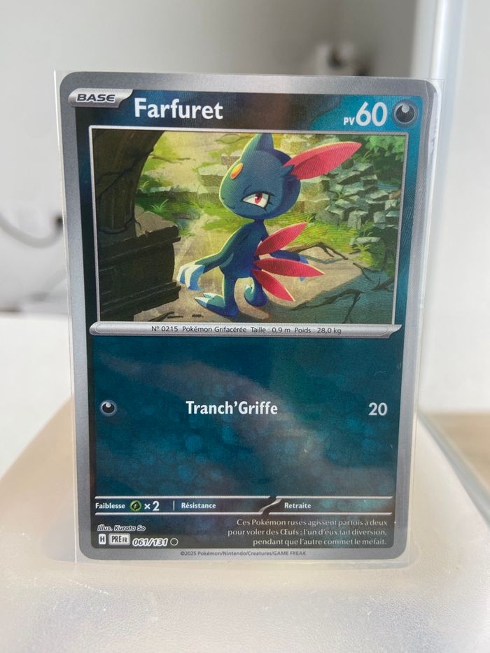 Bonjour, Je vends cette carte Pokémon Fatfuret Pokeball 061/131 de l’extension évolution prismatique.   ✅ | Carte neuve et vendu avec la sleeve !  📦 | Envoie rapide et soigné  🛍️ | Bon shopping