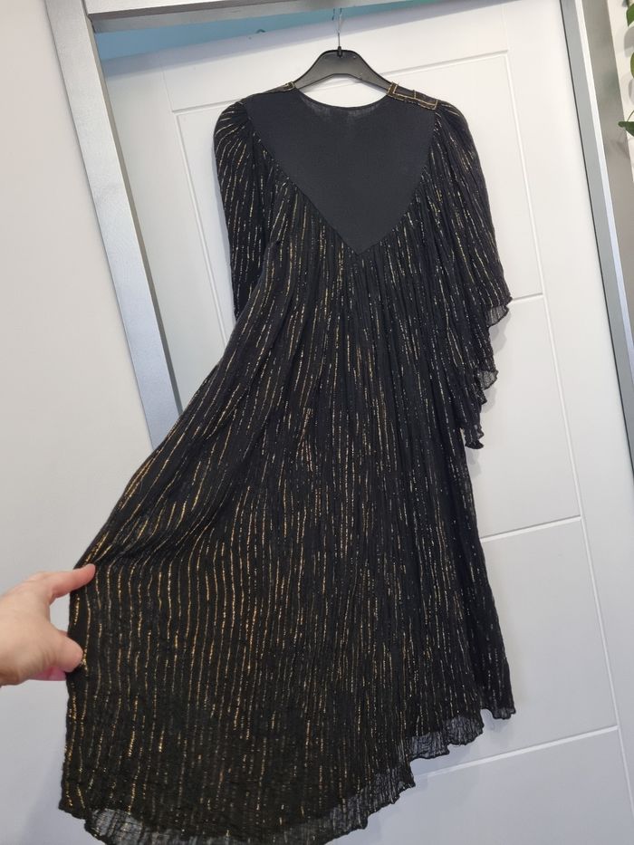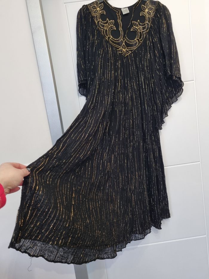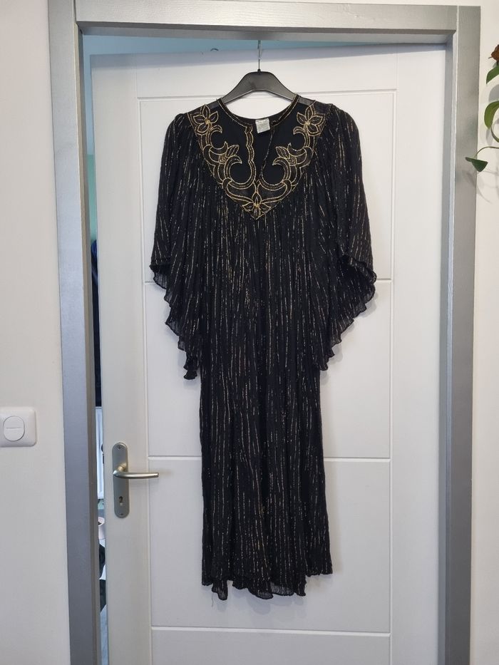 Je vends cette élégante robe de soirée noire avec une broderie dorée.