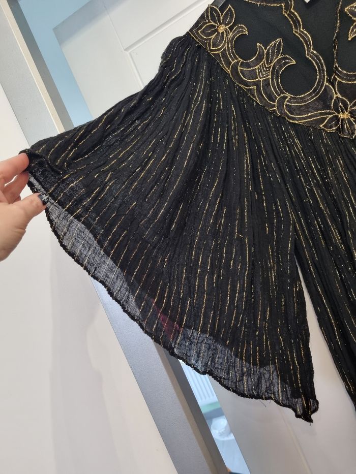 - Caractéristiques : Broderie dorée, Manches bouffantes