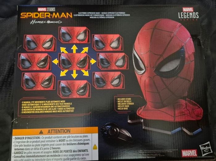 Je vends mon Casque de la marque Hasbro du personnage Spider-Man dans le film Home-coming Spider-Man. Il fait partie de la collection Marvel Legends commercialisée par Hasbro. Le casque est authentique et à été acheté dans un magasin de jouets. Le casque est neuf et n'a jamais été ouvert et la boîte est restée scellée.