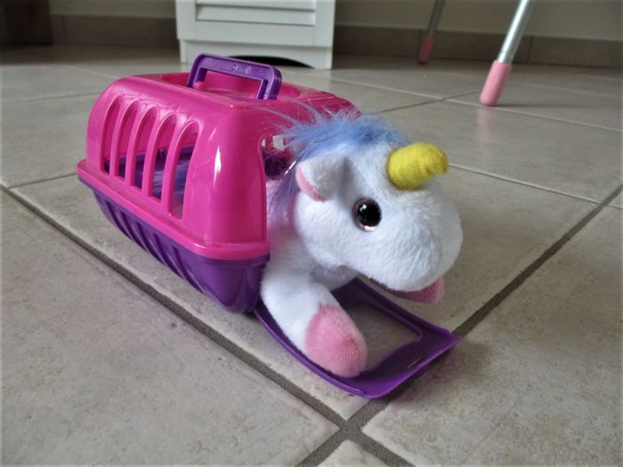 Peluche licorne dans cage Très bon état (comme neuf).