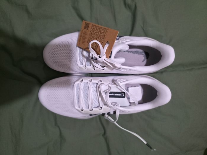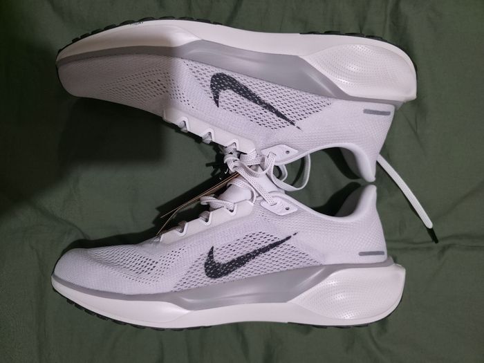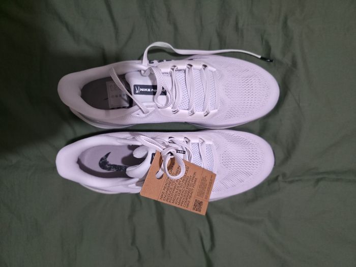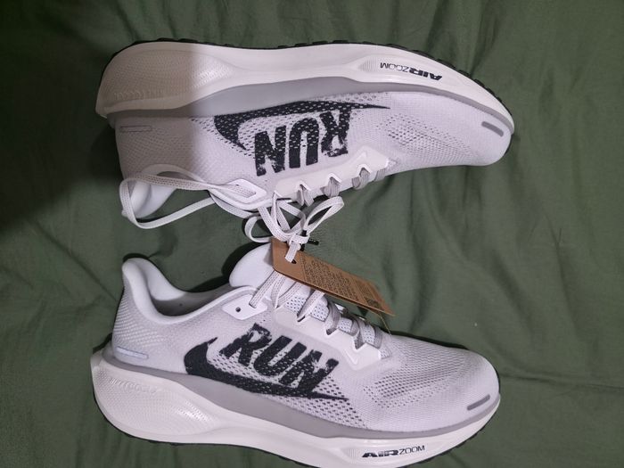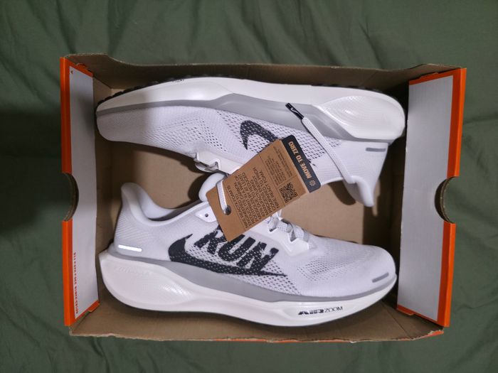 L'annonce concerne le modèle pour Homme "Nike Air Zoom Pegasus 41 Run Banc/Noir" en couleur orange et blanc. La pointure est du 44.