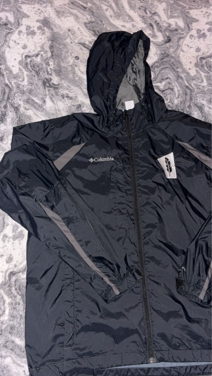 Superbe coupe-vent imperméable Columbia, couleur noire avec détails gris. Modèle léger, respirant et parfait pour la randonnée, les sorties outdoor ou la mi-saison. Capuche ajustable, fermeture zip intégrale, poches pratiques.